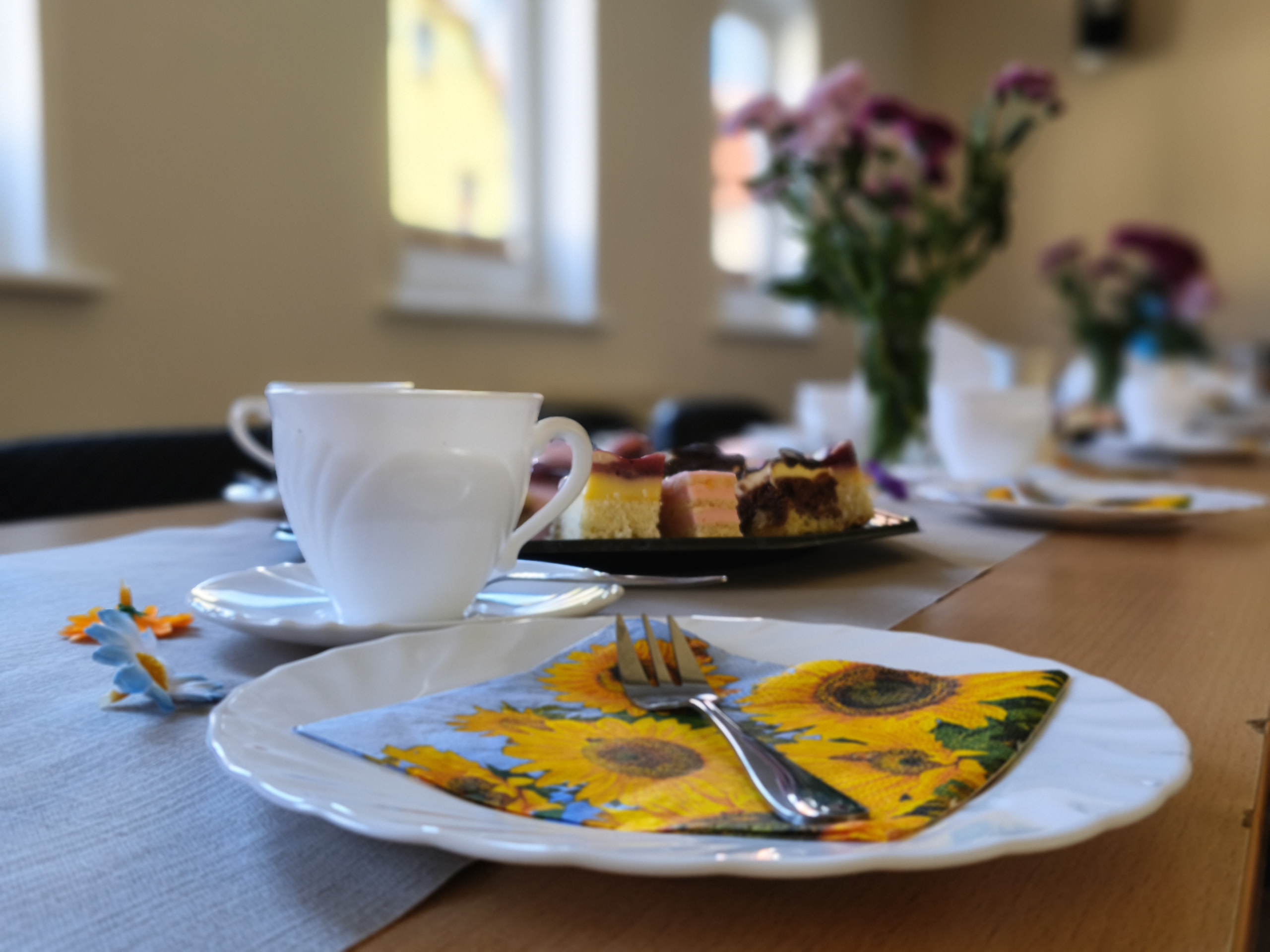 Nach der spielerischen Action wurde es gemütlich. Zur Belohnung gab es eine herzliche Runde mit frisch gebrühtem Kaffee und Kuchen. In entspannter Atmosphäre wurde geplaudert und gelacht. Zur Feier des Tages stießen wir zudem mit einem Glas alkoholfreien Sekt an – ein kleiner prickelnder Moment, der die Gemeinschaft noch enger zusammenrücken ließ.